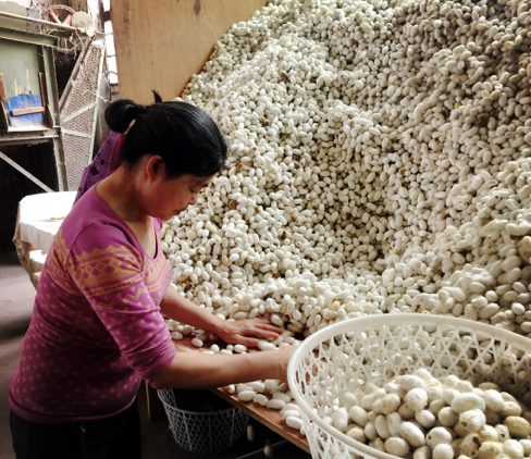 選繭流程:把好繭和壞繭分開,幾千年一直是這么手工選的。